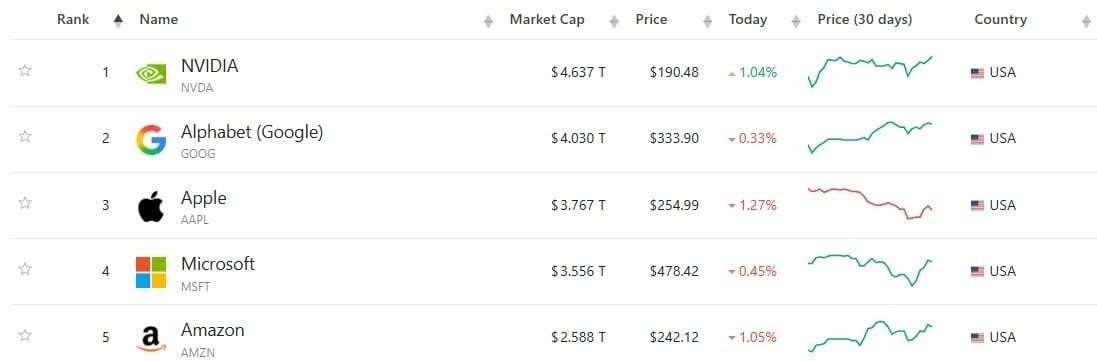 Alphabet (perdió 183 mil millones de dólares): perdió el segundo lugar ante Apple. Su capitalización bajó de 4.03 billones a 3.84 billones. Google sigue bajo la lupa por el futuro de su negocio publicitario frente a los chatbots.